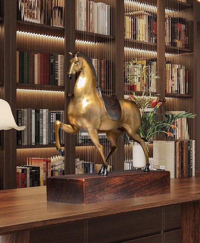In Chinese tradition, the horse is a creature of strength and speed, a symbol of honor and achievement. Its presence encourages relentless effort, the pursuit of success, and the joy of the journey. But there is a deeper layer to this piece, hidden in a pun. The word for “saddle” (鞍, ān) sounds similar to the word for “peace” (安, ān), but more importantly, the phrase “马上” (mǎ shàng) means “immediately” or “at once.” A horse with a saddle thus carries the wish for “immediate success” —that your career may advance swiftly, that opportunities will come without delay, that your path forward is clear and prosperous. This sculpture captures that promise. The horse stands in a posture of forward motion, its head raised, its legs lifted in a graceful step, its mane and tail flowing as if caught in a gentle wind. It is not charging; it is advancing—with confidence, with dignity, with the quiet assurance that the path ahead leads to greatness.