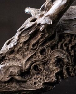 This is not merely a dragon’s head; it is the fossilized memory of one. Titled “Seeking the Dragon” (寻龙) , this extraordinary sculpture evokes the remains of a mythical creature, weathered by time and returned to the earth. It captures the essence of the dragon not in its fiery life, but in the quiet, monumental dignity of its passing. The exposed, skeletal structure of the skull speaks to its underlying power, a testament to a being that once commanded the skies and seas. It is a piece for those who are drawn to mystery, to the passage of time, and to the enduring power of myth.