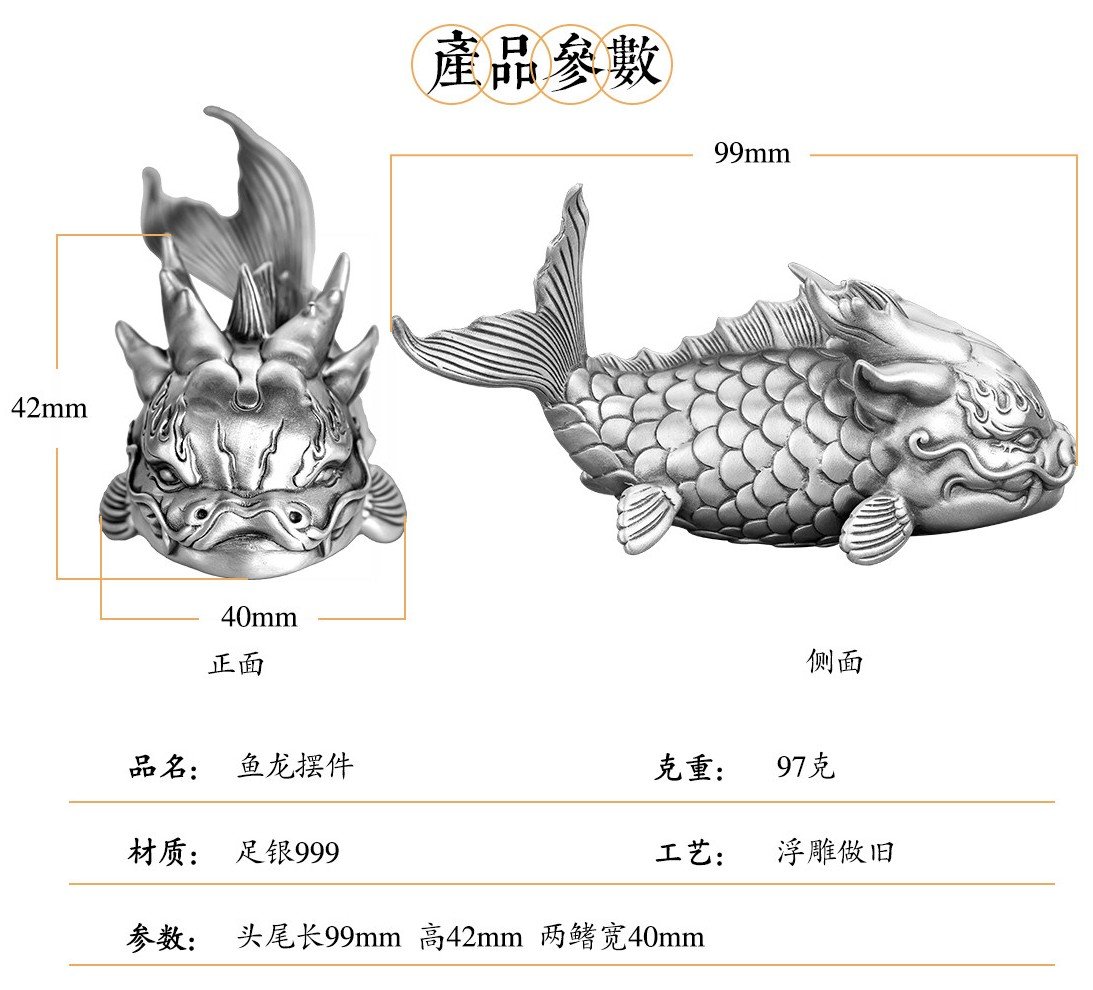 Solid Sterling Silver (足银999): Cast from pure 999 silver, the sculpture possesses a weight (97 g / 3.4 oz) that speaks to its quality and value. Silver, long associated with purity and clarity, is the perfect medium for a creature of transformation. The antique patina is applied by hand, darkening the recesses to make the texture of the scales and fins leap forward, while leaving the raised surfaces with a soft, luminous glow.