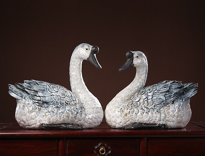 Welcome to Qilin ArtX, where the ancient ceramic art of Shiwan brings to life a pair of graceful geese—a mated pair, forever side by side, carrying wishes of fidelity, nobility, and good fortune into your home.