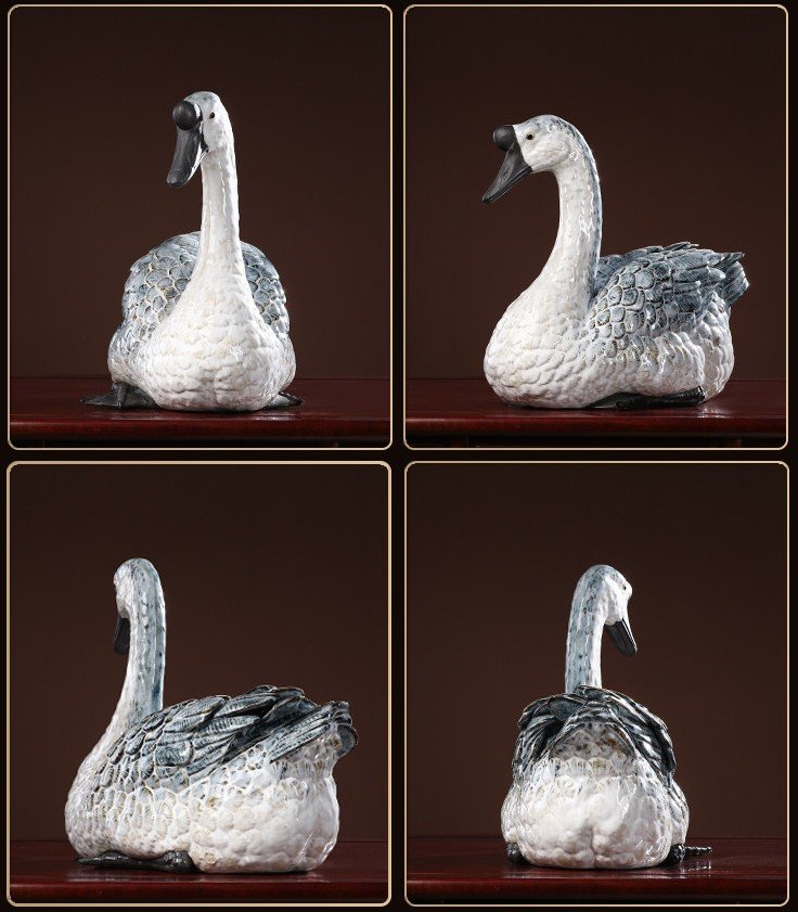 These sculptures are crafted in Shiwan, Foshan, Guangdong—a town renowned for its ceramic art for over five centuries. Shiwan pottery (石湾公仔) was inscribed on China’s first list of National Intangible Cultural Heritage in 2006. Unlike porcelain, which pursues flawless gloss, Shiwan ware celebrates the raw beauty of clay. The artists leave parts of the body unglazed, allowing the warm, earthy “bone” of the fired clay to show through, creating an effect that is “more warm and human than porcelain.” Each piece is handmade, shaped by skilled artisans, then fired at 1250°C. The glaze is thick, lustrous, and subtly variegated, giving the geese a sense of living softness.
