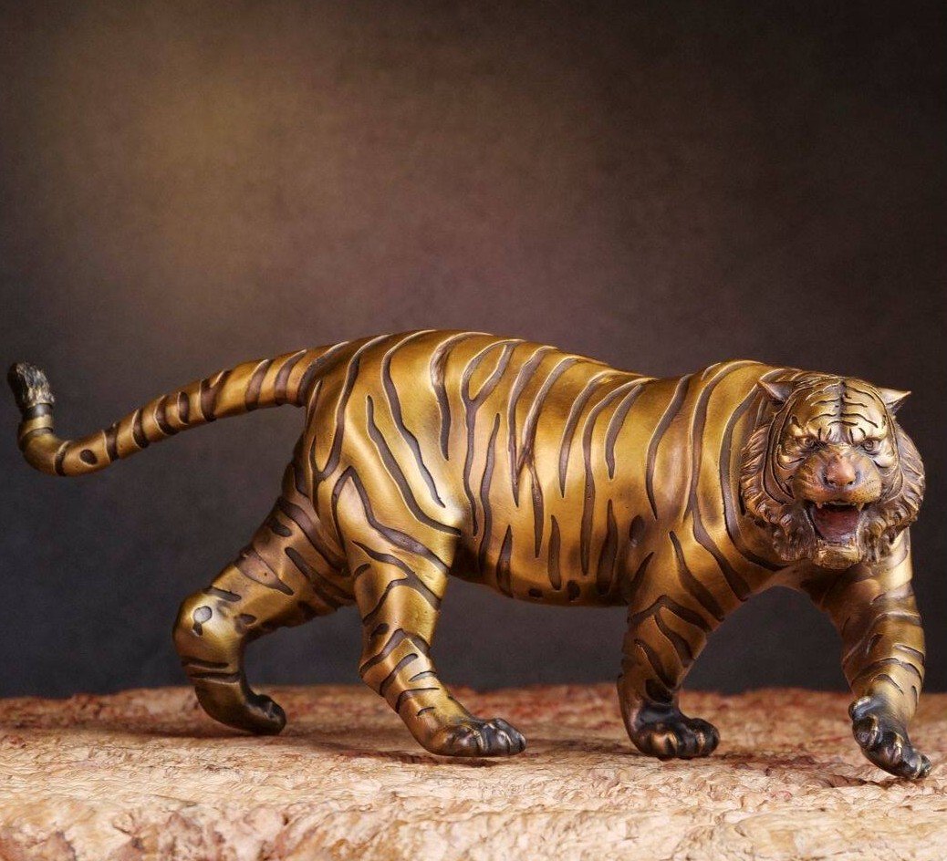 • Solid Brass Construction: Cast from high-quality solid brass, the sculpture possesses a satisfying weight (1.8 kg / 4.0 lbs) that speaks to its quality and permanence. The surface is finished with a warm, golden patina that evokes the tiger’s namesake—the “Golden Tiger” of Chinese lore, a creature of auspicious strength.