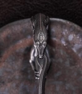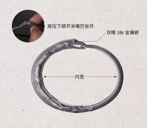 This is not a static ornament. It is a creature waiting for your touch. The Komodo Dragon Bangle captures the ancient power of the world’s largest lizard—its armored scales, its primal presence, its quiet intensity. But there is a secret hidden in its form: press gently on the jaw, and it opens. The dragon speaks. Or perhaps it listens. It is a piece of wearable art that invites interaction, a companion that responds. And in its circular form—head meeting tail—lies a profound wish: “From head to tail, wholeness is found” (首尾一贯,方得圆满) . A reminder that true completion comes not from arriving, but from the quiet closing of a circle.