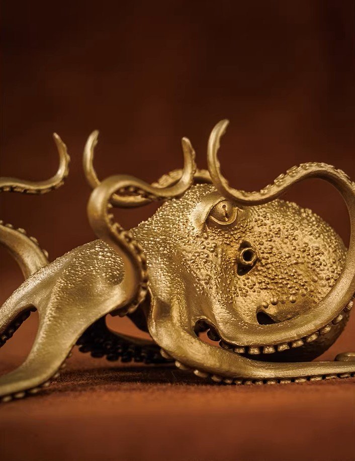 Solid Bronze Construction: Cast from high-quality solid bronze, the sculpture possesses a satisfying weight (210 g / 7.4 oz) that speaks to its quality and permanence. The warm, golden tone of the metal gives the octopus a timeless presence.