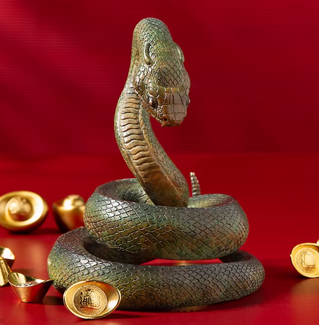 • Gold (Jin): A warm, radiant finish that suggests the snake’s alchemical power—the ability to transform the ordinary into the precious.